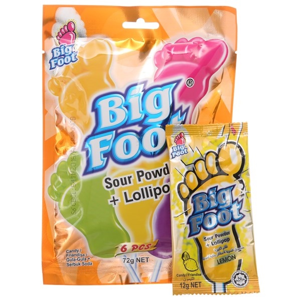 Kẹo cứng hình bàn chân ngộ nghĩnh, chấm cùng bột mịn hương trái cây, tạo nên trải nghiệm thú vị khi thưởng thức. Kẹo que trái cây BigFoot gói 72g hương vị thơm ngon, hợp khẩu vị mọi lứa tuổi. Kẹo cứng BigFoot mang đến cho bạn những cảm giác ngọt ngào.